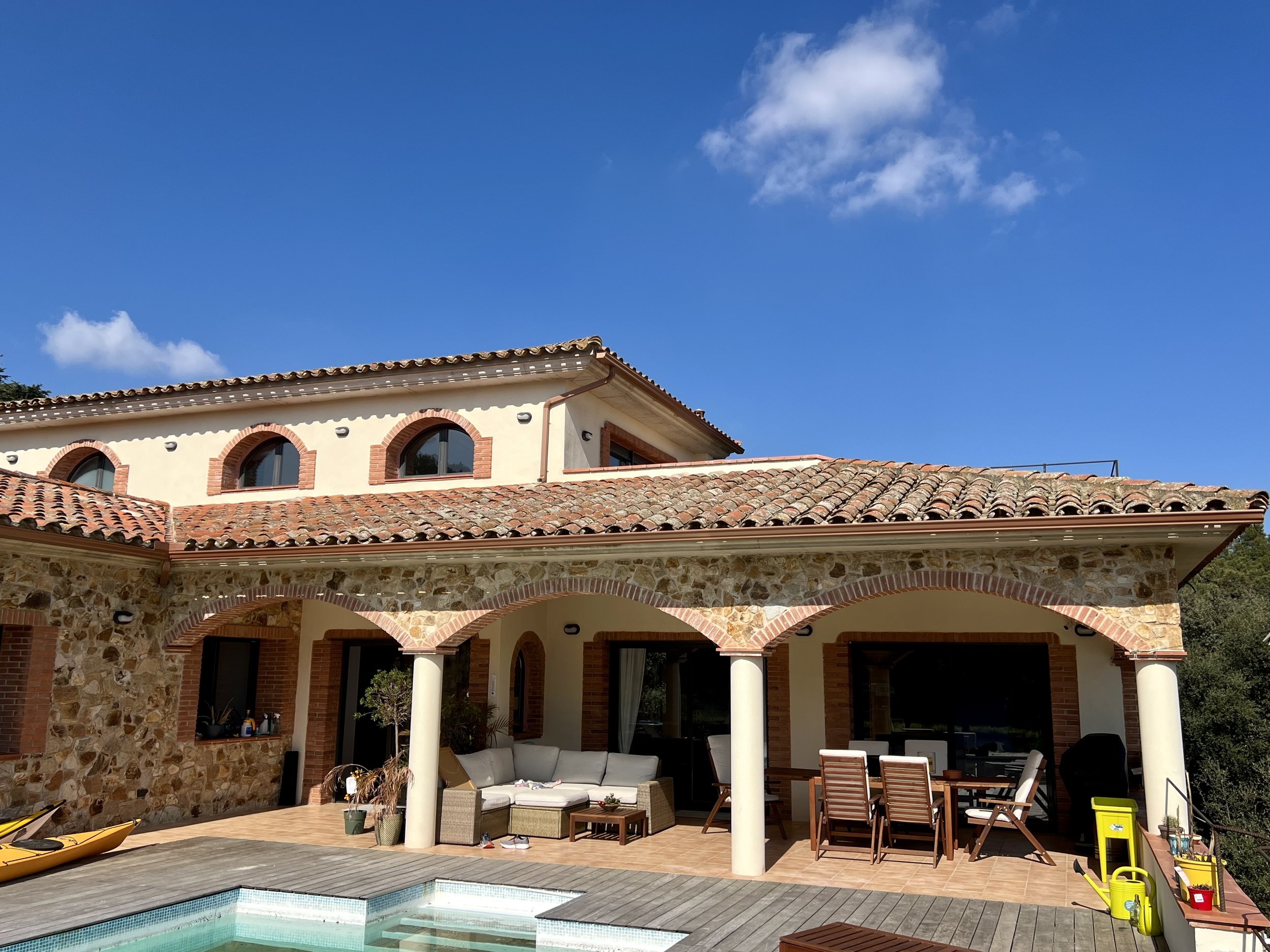 The 8-metre pool and surrounding terraces are perfect for relaxing in the sun or dining outdoors. A large garden provides plenty of space for children to play or for quiet moments in nature. BBQ facilities and shaded dining areas make long evenings under the Catalan sky a highlight.