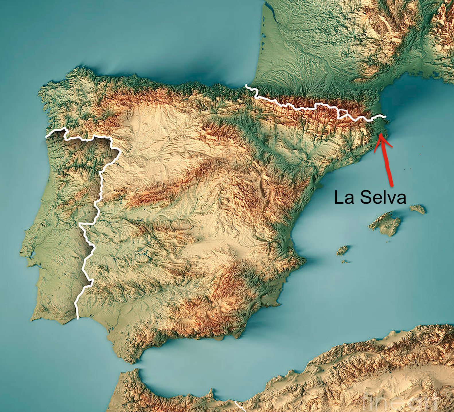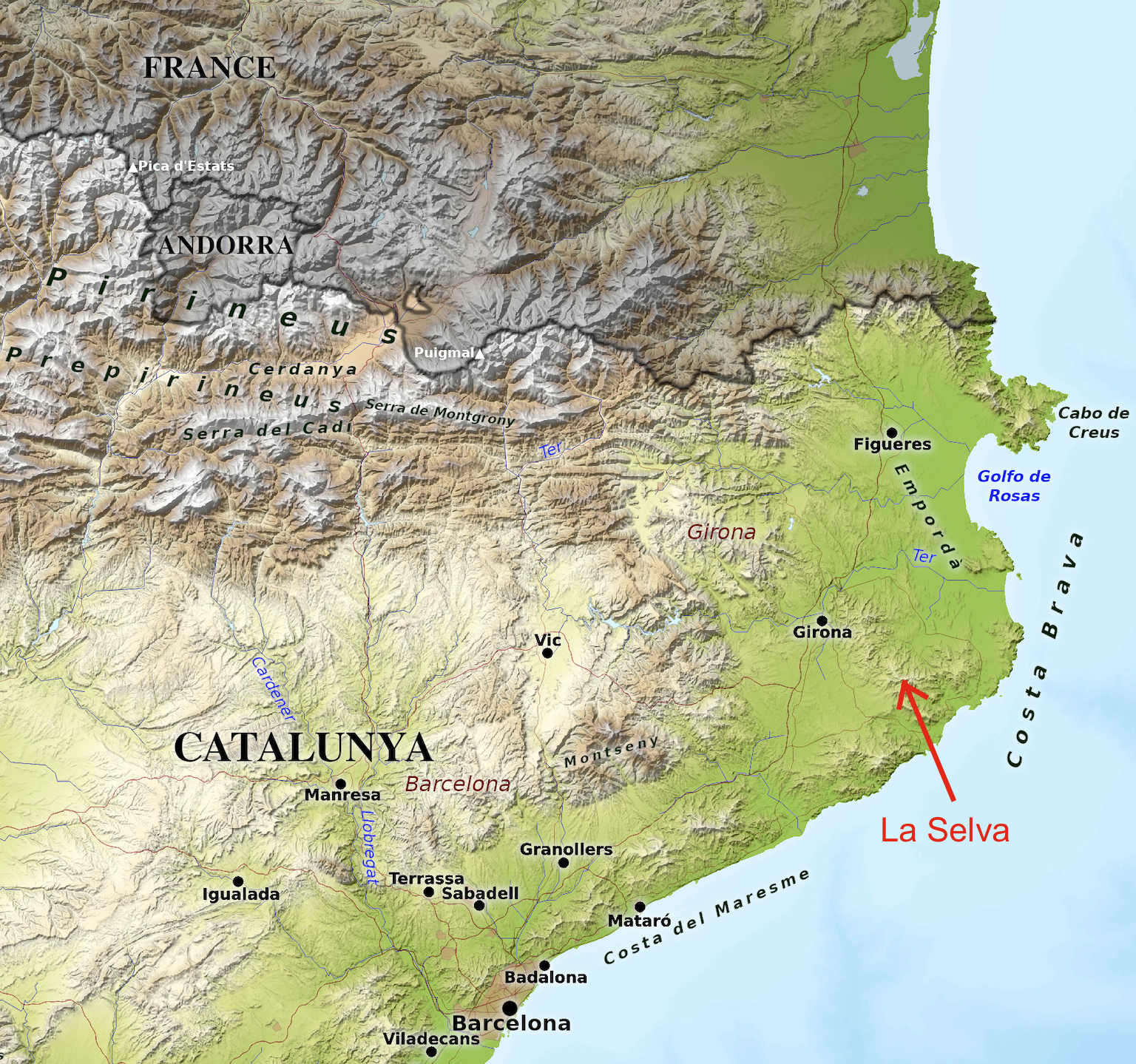 Catalonia is a mountainous region in N.E. Spain, and La Selva is a richly forested area in Northern Catalonia.